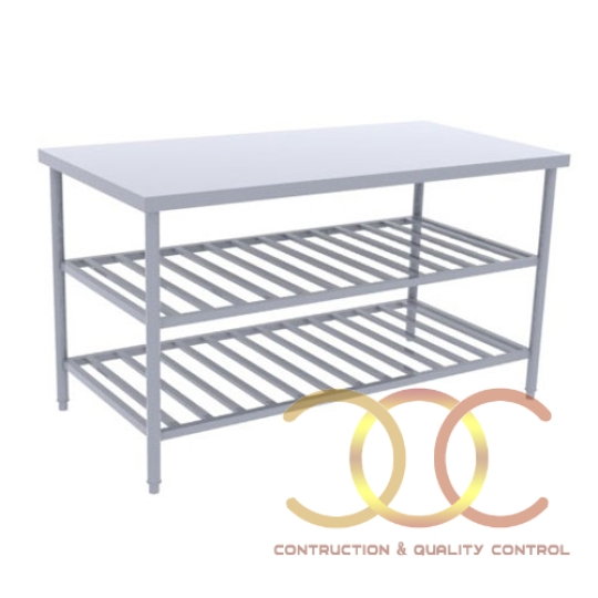 BÀN INOX 2 TẦNG CÓ KỆ SONG